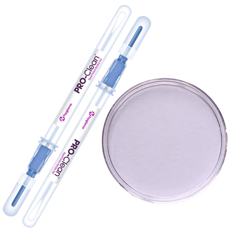 The kit contains 2 Pro-Clean swaps and 1 mould air test plate.